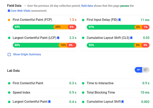 In order to check the performance of your site and measure Core Web Vitals, there are various free tools such as Google Search Console, Google’s PageSpeed Insights, Lighthouse and many others.